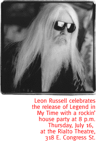 In 1973, Russell first invoked the spirit of his "alter-ego," Hank Wilson, with the recording Hank Wilson's Back and its critically acclaimed 1984 follow-up, Hank Wilson, Volume II. Now Leon/Hank rolls into Tucson's Rialto Theatre hot on the heels of Legend in My Time: Hank Wilson, Volume III. The tremendous CD features country classics like "Sweet Dreams," "Sixteen Tons" and "Daddy Sang Bass." Russell says he chose such standards "because, at a certain point, these songs became a part of history." Show time is 8 p.m. in the Rialto Theatre, 318 E. Congress St. Advance tickets are $10, available at Hear's Music, Yikes Toy Store and Guitars, Etc. Tickets are $12 at the door. For details, call 740-0126. BARNEY BLARNEY. That purple pillow called Barney gets a run for his prehistoric money today. Dinosaur dynamo Rob Meyer visits the Tucson Children's Museum with his own robotic recreations of large critters roaming the earth before the advent of polystyrene. Arts and crafts activities will accompany his display. Presentation runs from 1 to 4 p.m. at the TCM, 200 S. Sixth Ave. Admission is $5, $4 for seniors, $3 for kids. For details, call 792-9985.