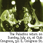 Performance runs from 7 to 10:30 p.m. on the Winsett Park stage, located on Fourth Avenue between Seventh and Eighth streets. For details, call 624-5004. ORAL VISIONS. The written word and physical images combine in Bero Gallery's Poetry Gallery-3. This year's outing is a snapshot of collaborative works between poets and photographers. Included are Richard Siken, Darren Clark, James Graham, Camille Bonzani and Kore Press, among others. Exhibit runs through August 30, with an opening reception and performance from 7 to 10 p.m. on Saturday, August 2, at Bero Gallery, 41 S. Sixth Ave. Regular summer gallery hours are 5 to 7 p.m. Thursday, and 7 to 10 p.m. during Downtown Saturday Nights. Call 792-0313 for information.