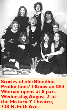 I Know An Old Woman continues at 8 p.m. Wednesday through Sunday through August 13 at the Historic Y Theatre, 738 N. Fifth Ave. Tickets are $8 in advance from Antigone Books and Fit To Be Tried, $9 at the door. Call 326-7354 for information.