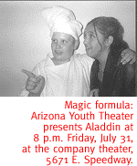 These boys are barroom buddies from way back, and their boot-stompin' stage show will make you ornery enough to spank yer granny. Alvin is touring to support his latest Hightone Records release, the excellent Blackjack David. Gaffney, a former Tucson homie, is known to rip it up with his borderland blend of Tex-Mex and country. Show time is 9 p.m. in the Rialto Theatre, 318 E. Congress St. Advance tickets are $10, available at Hear's Music, Yikes! Toy Store and Guitars, Etc. Tickets are $12 at the door. For information, call 740-0126. DREAMS OF GENIE. After you've scratched your last losing lottery ticket, and swept another sweepstakes into the trash, do you ever stop to wonder what could happen if only...? The tots and teens of the Arizona Youth Theater rehash such wayward fantasies with their presentation of Aladdin, wherein Jazmin, evil Jafar and the fun-loving Genie remind us to be careful what we wish for. Tonight's performance is at 8 p.m. in the Arizona Youth Theater, 5671 E. Speedway. Performances continue at 8 p.m. Fridays, and 11 a.m., 2 and 4 p.m. Saturdays, through August 22. Tickets are $6 for adults, $4 for children, and are available by calling 546-9805. POET'S CORNER. Martha Silano's work has been described as "witty and intelligent," and her poems have appeared everywhere from The Paris Review to Poetry Northwest. This week, she shares her lyrical vision with Tucson as part of the UA Poetry Center's Summer Residency Program. Silano will read from her work at 7 p.m. in Antigone Books, 411 N. Fourth Ave. Admission is free. Call 792-3940 for details.