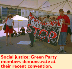 Foreign guests included Christobel Chamarette, one of two Green senators in Australia, and Adamou Garba of Niger, coordinator of Africa's 21 Green parties. Others speaking and attending represented a variety of progressive organizations and parties which have found a comfortable place with the Greens.