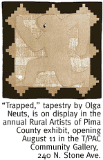 City Week includes events selected by Calendar Editor Tim Vanderpool. Event information is accurate as of press time. The Weekly recommends calling event organizers to check for last-minute changes in location, time, price, etc. To have material considered, please send complete information at least 11 days prior to the Thursday issue date to: Tucson Weekly, P.O. Box 2429, Tucson, Arizona 85702, or fax information to 792-2096, or email us at [email protected].