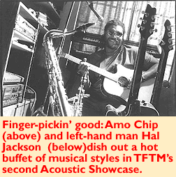 Accompanying Chip at the concert, and on Amo's CD, So Many Ways, is singer/songwriter/guitarist Hal Jackson, himself a seasoned player plugged and unplugged. Their set at the showcase will reflect their love of performing music in a personal setting, where the lyrics can be heard, where "the voice can be out front. It's about touching people and making them listen and feel something."