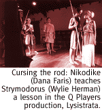 ![]() The Q Players Rise To The Occasion In 'Lysistrata' By Zachary Woodruff WHAT'S THE BEST way to get a bunch of men to behave? Why, deny them sex until their erections are excruciating, of course. That's exactly what the women of Greece do in Lysistrata, a comedy dating back to 411 BC--a time when women didn't have too many other options for empowerment, and men didn't have hand lotion.