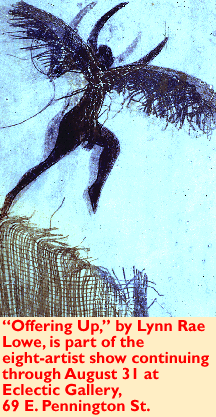 and "Aztec Calendar," wood sculpture by Louis Colucci.