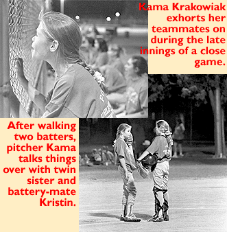 Kristin told me that Kama has a little freckle below her bottom lip. The twins would turn out to be two of the best ballplayers I've ever coached. Friendly, outgoing, hard-nosed, willing and able to play any position, bat anywhere in the lineup, and basically do whatever was necessary to help the team.