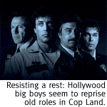 ![]() Sylvester Stallone Plays A Role Worthy Of His Talents in 'Cop Land' By Stacey Richter BECAUSE WE GO to the movies, we all know that there are good cops and bad cops. Good cops fight for law and order, even if their methods are a little suspect. They might have to blow some people away, but these people will have been vile. Bad cops are partisans of corruption and blow people away for profit, or kicks. Cop Land is about good cops fighting bad cops; true to its name, nearly every character in Cop Land is a cop, except for one, who's a cop's wife.