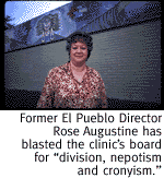 As new board members came on and older ones left, the majority solidified around certain staff members, particularly TCE program director Campillo, according to Augustine, who herself served only eight months on the board and as president for six of those months. Several incidents brought matters to a boil: Augustine invited to the June 24 meeting of El Pueblo's board two folks whose support the clinic obviously requires--Pima County Board of Supervisors Chairman Raul Grijalva and Kino Hospital Director Dr. Richard Carmona. Grijalva represents El Pueblo's major funding source, and Carmona oversees the clinic's principal creditor (El Pueblo Clinic owes Kino $171,000, according to Carmona, and the debt is climbing). Augustine hoped for some meaningful discussion. However, according to several of those who attended this meeting, many El Pueblo board members barely concealed their contempt for the two officials. Some tried to keep Grijalva from speaking, while others strongly rejected Carmona's stated desire for full control of El Pueblo's administration as part of the solution to the clinic's problems and mounting debt. One of El Pueblo's board members is former state Sen. Luis Gonzales. Long a player in southside politics, Gonzales has been out of office since 1982, when he ran a kamikaze campaign against then-Congressman Mo Udall in the Democratic primary. Gonzales has run unsuccessfully for office several times since then, including attempts at the Board of Supervisors and the Tucson City Council. During their long political careers on the southside, Gonzales and Grijalva have usually been at each other's throats. Gonzales joined El Pueblo's board in March, along with several other new members. By June he was part of the personnel sub-committee that determined Campillo, the laid-off director of the clinic's TCE program, should be rehired with retroactive pay, thus canceling the decision of Acting Director Kulatilake and helping force her resignation. She's not the first El Pueblo manager to quit after being overruled by the directors. Next, the directors decided to hire a consultant instead of replacing Kulatilake. But they interviewed only one candidate--former Tucson city councilman and recently retired state employee Hector Morales. They voted to bring him aboard at $250 a day, on a 90-day contract. Morales has stated he'd like to serve as the organization's executive director, a role he's essentially filling now. Augustine says she tried to get another candidate interviewed for the position, but the board struck his name from consideration and didn't interview him. She and others believe the "fix" for Morales was already in. These actions forced Augustine to join a number of former board members in resigning. She says she was appalled that El Pueblo's TCE clinic: Can no longer add clients because of lack of money; Is reducing services to its 800 current patients; Lacks key medical personnel; Has had five executive directors in four years; and, Is in hock over $200,000. Furthermore, Augustine alleges nepotism, based on the fact that two of the clinic's managers are sisters, and one supervises the other's daughter. She adds that her charge of "cronyism" applies to Morales' hiring. While none of the others who resigned from the board were quite as strong as Augustine in their condemnation of El Pueblo's practices, at least two stated their objections in letters of resignation. In August 1996, Teresa Salinas wrote: "The turmoil that exists in the clinic of late is very disturbing and nonproductive...board members cannot be effective in moving the organization forward under this environment." At about the same time, Norma Stephens left the board, and wrote in her resignation letter: "I'm personally aware that more resignations are forthcoming, and this does not bode well for the clinic. My concern is that this type of instability may affect funding and ultimately hurt the people who depend on the clinic for healthcare. It's unfortunate that a few self-interested individuals have been able to create such division within the board that at least four board members will have resigned before the dust settles. This saddens me because those leaving have been very active and dedicated members, but it's understandable if they are feeling the same level of frustration as I am." Both of these resignations took place before Augustine came on the board--which contradicts Morales' claim that Augustine caused most of the division and management problems. As Morales was coming in the door, Augustine was going out, and Morales admits his view of her comes from listening to secondhand accounts of her tenure. CARMONA, GRIJALVA AND Augustine all believe the only long term-solution to the problems of the TCE clinic is to leave it at El Pueblo, but place its administration under the county's Kino Hospital. This, they argue, offers the most cost-effective way to serve patients. And since the county picks up most of the tab, this would leave El Pueblo functional and unabsorbed, yet still administratively responsible to its largest funding source. After all, El Pueblo Clinic handles more than TCE--it also takes care of homeless, pregnancy care, and low-income citizens with other medical problems. With the elimination of supervisors Ed Moore and Paul Marsh during the last election, the current crop of supervisors is far more friendly toward Kino Hospital and subsidized southside healthcare in general, making this move more politically feasible, not to mention the fact that it would fit nicely into the county's new "Integrated Health" program, which pulls together assorted county health programs under one director--currently Carmona--and reduces the Board of Supervisors power over them. And still friendly to El Pueblo Clinic--even though they're skeptical about its current leadership--the supervisors voted to reinstate in the current budget the $250,000 annual appropriation for the TCE clinic. But Grijalva and Coun