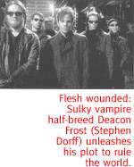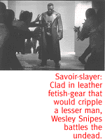 ![]() 'Blade' Is All Surface, And Cool As A Good-Looking Corpse. By Stacey Richter I CAN'T REMEMBER if I've confessed before in this space that I love the undead, so let me just mention it now. Staying up all night sucking human blood, wearing gorgeous clothes, forgoing aging, enjoying superhuman strength and having lots of money (they always do)--this is exactly the kind of end-of-millennium decadence I've been thirsting for. So naturally I loved Blade, the bloody vampire movie based on the eponymous comic-book character (one of the first African American super heroes, by the way). I hesitate, though, to vouch for the quality of this flick. A friend asked me if I'd seen any good movies lately, and I said: Yes! Blade! And he replied that wasn't really what he meant by a "good movie."