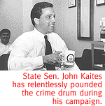 Pennsylvania. After law school, Kaites continued his cloudgazing on weekends at Phoenix's Channel 12, and got himself an internship--and, eventually, a job as a prosecutor--with then-attorney general Bob Corbin. Kaites was on the AG payroll from May 1989 to January 1991, a total of 19 months, when Corbin's successor, Grant Woods, fired him within days of being sworn in. Woods has gone on the record during the current AG campaign, saying he fired Kaites because he was a lousy lawyer. "Lousy" may or may not be an accurate assessment of Kaites' performance. The Kaites camp claims his personnel file from the AG's Office has mysteriously disappeared; actually, according to spokeswoman Karie Dozer, all personnel files are destroyed after five years. In any event, it's unlikely that Woods knew much about Kaites beyond the fact that he had openly supported Woods' opponent, Steve Twist. Kaites was one of nine lawyers Woods fired during his first weeks in office. Was he simply cleaning the house of Twist-ites? Hard to say without that personnel file, but McGovern's supporters have dug up a court case Kaites lost, citing that as the reason he was let go. Whenever he speaks of his AG experience, Kaites points out that he was assigned to the office's organized crime and racketeering division. But what he doesn't say is that he worked on environmental cases which, while certainly important, don't fit as well with his current pose as a crime buster, nor are they as sexy as cases about drugs and mobsters. The civil case in question involved a company in Pinal County, Red Baron Car Washes, accused of polluting an aquifer. Kaites lost the case on a directed verdict, a rare move during a juried trial in which a judge dismisses a jury and decides the case based on the performance of the plaintiff's attorney (in this instance, Kaites) without even hearing the defense's argument. The judge found in favor of the defendant, the alleged polluter. After his stint at the Attorney General's Office, Kaites dabbled. He ran for the congressional seat vacated by Mo Udall in 1991, continued to do the weather and landed a job at the Maricopa County Attorney's Office. Kaites claims to have won 100 convictions as a county prosecutor. While technically true, such stats don't give Kaites bragging rights as Mr. Crime. Almost all county criminal cases are plea-bargained. Given Kaites' short stint as a county prosecutor, he averaged a conviction every day and a half. He was hardly trying the O.J. Simpson case. Kaites left the County Attorney's Office after seven months and joined the law firm Struckmeyer and Wilson. In November 1992, Kaites was elected to the state House of Representatives. After one term, he won a seat in the Senate, where he continues to serve. As a lawmaker, Kaites gained a reputation as the governor's man on crime, supporting Symington favorites like juvenile justice reform and sexual predator notification. He was named chairman of the Senate Judiciary Committee in 1996, but by then Kaites already had his eye on the next prize: the attorney general's seat being vacated by Grant Woods in 1998. Kaites has pursued the AG spot with the single-mindedness of a cat chasing a moth. He'd already earned a reputation as a party loyalist, a constant fixture at GOP events. He'd been currying favor with the law enforcement and insurance communities for years in the Legislature. Now it was time to cash in his chits and raise money for the AG race. But there was a problem. In Arizona, officeholders are required to resign from one office to pursue another, unless they're in the final year of a term. Instead of resigning, or holding off on the AG campaign while focusing on his tasks as a state senator, Kaites introduced legislation that would allow an officeholder to create an "exploratory committee" to raise money to run for another office, while maintaining the original office. The bill passed. Subsequently, he was investigated by an independent counsel who found that Kaites' new exploratory committee law had so muddied the waters that it was not clear whether he had violated the original resign-to-run law. And by the end of 1997, weeks before he officially announced his candidacy, John Kaites had raised well over $100,000. You might call him an effective legislator.