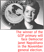 Napolitano has never held elective office, but her last job--Arizona U.S. Attorney--is the best credential imaginable for the seat she's seeking. She's honing her debating skills with frequent speaking engagements and even has a new, although not too different, hairstyle. Conventional wisdom: She'd have an easier time against Kaites, partly because she's almost sure to pick up endorsements from Grant Woods and Joe Arpaio. But victory would not be assured. A Kaites-Napolitano race would likely make the Kaites-McGovern match look like a day in the sandbox. If Napolitano's Republican opponent decides to go negative, he'll have a tub of mud to fling. Napolitano is a single woman, forced to declare her sexual identity--straight--in the daily paper recently, for fear someone will try to make it a campaign issue. Someone still may. Count on Napolitano's opponent to make something of the fact that she was part of the legal team that represented Anita Hill during the Clarence Thomas confirmation hearings in 1991.