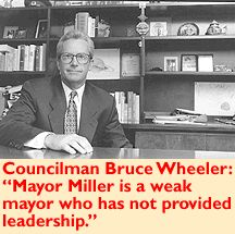 "I decided to run for mayor because there are some important issues that require leadership, and Mayor Miller is a weak mayor who has not provided leadership," says Wheeler, sitting at a table in the westside Ward 1 office that has been his headquarters for the past eight years.