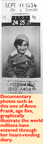 And many viewers, me included, have the feeling they know Anne. The diary she kept during her family's two years of hiding, first published in 1947, has sold millions of copies, been translated into many languages, and was made into a play and movie. We already know that the carefree photos of Anne's childhood were doomed to collide with the chilling pictures of the camps.