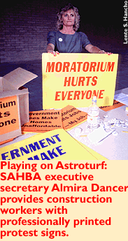 You could tell the environmentalists were spontaneous and genuine by their hand-lettered signs. One way to spot Astroturf is when there's a large pile of pre-printed signs being handed out to select folks, as SAHBA was doing.