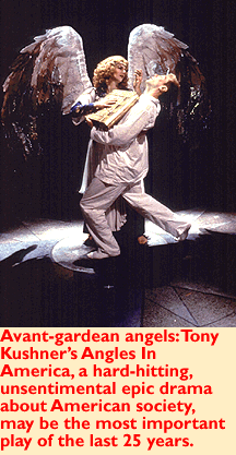 PLAYWRIGHT TONY KUSHNER is not content to simply record the horrors of AIDS. Angels in America is a serious, unwavering drama about gay love. It's a warm, humorous commentary on our responsibility as caretakers. It's religious and irreverent. It's a piece of political activism; a homily on the dwindling of community during the self-indulgent Reagan years and a weak glimmer of hope for the future. It's a seven-hour epic. It's highly controversial and widely acclaimed. It takes every topic usually reserved for off-Broadway and shoves it into mainstream theater. It's the winner of a Pulitzer Prize and two Tony Awards for best play. And it's Ken Foster's pick to kick off the new season at Centennial Hall.