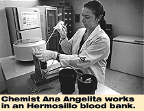 Dr. Henry Richard Viater, manager of Sonora's 48 blood banks, says since 1988 each unit of blood has been tested for HIV antibodies. Mexican health officials say HIV transmission through transfusions was higher before the government's rigorous testing policy and that's what the statistics represent. But those numbers may climb. According to a '94 World Health Organization paper, there's an average 10-year gap between HIV infection and AIDS onset.