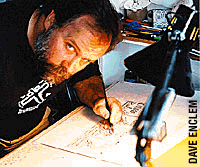 He finally nailed down that all-important philosophy degree. "And I was actually freelancing for the Star," a place he probably wouldn't deign to work today, even if you threatened him with a personal chat with the executive editor. During this life stage, he also hooked up with a promising alternative paper, Tucson Weekly News (no relation to the sleek, well-written tabloidal publication you now hold in your hands). While initially delivering some hard-hitting reporting, the Weekly News quickly degenerated into little more than a smarmily liberal Sam Hughes Neighborhood newsletter as the good staffers--Paul Rubin, Ray Ring and John Bancroft--drifted away. Meanwhile, his lobbying efforts to become the Star's political cartoonist fell on deaf ears, and so he did the most logical thing he could--in 1980 he moved to El Paso. But wait, it's not as pathetic as it sounds: Once there, Carlson was able to transform himself into a national rebel political cartoonist for the El Paso Herald.
