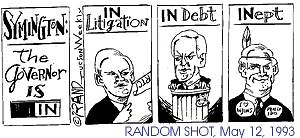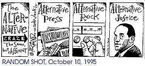 But not, he swears, in a carnal sense. It was a happy time, but that old Carlson restlessness soon set in again. "El Paso was a terrible place to live," he says. "The Franklin Mountains have about one tree on them. I was looking at that, and the stacks of the big power plant there, and the air-quality wasn't that great." HE HEARD THROUGH the grapevine the New Times was having "art problems," and since the statute of limitations had about expired on his previous Phoenix escapades..."I drove over and was shocked to see New Times was into big, big success." Michael Lacey, the paper's brilliant and colorful editor, and the closest thing in American alternative journalism to God the Father Almighty, offered Carlson the art director's job. Lacey's an interesting man. Although never actually convicted of first-degree murder, the number of two-bit political whores he's gutted during his career has kept his delighted readers munching on kidney pie for years. And while Lacey's blood-thirsty pen is razor sharp, his tongue is like a big, hairy German shepherd--more or less friendly, right up to the moment it smells fear. Then it's suddenly ripping your face off; if a tongue can be said to do that, metaphorically speaking, of course. Perhaps there's no greater tribute to Rand Carlson's superhuman ability to ingest massive quantities of Valium and Prozac than the fact that he claims to "get along good, for the most part," with Lacey. "Oh, sure he's a volatile character," Carlson chuckles bravely. "I can recall the atmosphere at editorial meetings. You're going through your recitation of your duties, and he's so sharp. He'd ask me the most probing questions, almost reducing me to tears." Many a time, Carlson recalls, this dangerously whirling Cuisinart blade of an editor would make him redo New Times cover art even though Carlson--did we mention he's a much-decorated professional artist?--thought they were OK. (Carlson still has both hands, so obviously he never made any sudden moves around Lacey; and he'd probably like us to make it perfectly clear that he never actually used the words "dangerously whirling Cuisinart blade" in describing His Most Merciful Eminence.) "But he was very complimentary, uh, when he thought I deserved it," Carlson adds. "I do respect him. It was fine. He was a strong boss." STRANGELY, EVEN THE great honor of working for a living legend couldn't quell that famous Carlson urge to somehow further screw with his career path. After the magical two and a half years were up at New Times, Carlson was seized with the urge to art direct a slick, full-color magazine. The job at Hustler was taken, so he jumped to Arizona Trend, a relatively short-lived business publication edited by a guy named Jim Kiser. Perhaps you've seen Kiser's work lately--the creatively hip and with-it Arizona Daily Star editorial pages. Now there's a man who truly understands eye-popping graphic design, almost as well as he understands local politics, judging by the Star's recent political endorsements. After a year and a half, Trend honchos were criticizing Carlson's style as "a little out there." This from middle-aged white guys in ties who probably ran more photos of middle-aged white guys in ties than any publication in Arizona before or since. "They were starting to put some heat on me," Carlson recalls. As usual, he had some vague notion of a painful, career-wrenching plan: "It just occurred to me in this flash--I told the Trend folks, 'Let's cooperate. How 'bout if I find you a replacement, and I start my own business, and everybody will be happy?'" Happy indeed. This was 1987, just as the smoothly humming economy suddenly veered from the road of assured profitability and plunged into the muck of minor recession. Ignoring his palpitations and cold sweats, Carlson bought a home in Tucson and began freelancing with a vengeance, landing regular gigs with the legendary local City Magazine and the not-so-legendary national magazine V. It was also at this point that the universally loved and acclaimed Doug Biggers, publisher of the well-respected Tucson Weekly (Motto: "It's Thursday--so where are the damn papers?") offered Carlson alternative journalism's first $1-million-a-year contract for social and political cartooning, a move which caused Carlson's longtime friend and fellow cartoonist, The Arizona Daily Star's Dave Fitzsimmons, to blow chunks. "He's been worth every penny," Biggers maintains from a cell phone on a yacht somewhere near Guyamas, Sonora, Mexico. "If we had more, believe me, I'd give it to him. But, unfortunately, I've squandered all of last year's profits on the Web." SO THERE you have it--Rand Carlson's uniquely American success story, embellished by the very techniques of understatement, accuracy and spareness of verbiage he himself employees to delight, if not mystify, Tucson Weekly readers around the globe. These days, besides devoting several minutes a week to his strip, Carlson is art director of a large and prestigious publication, which prefers to remain anonymous so it can still date chicks. He's also illustrating for New Times, Inc.'s string of monstrously successful alternative papers in major American cities. And, he adds, somewhat gleefully, "I do meetings and conceptualizations. That's where the cool money is."