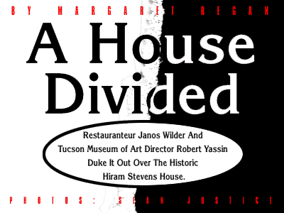 Petra Santa Cruz Stevens, who later said a Spanish comb in her hair may have saved her life, was wounded but still alive. But her husband grabbed a second gun, an old Army pistol, jammed it against his own forehead and pulled the trigger. He died instantly. The dead man had been one of the town's best-known and most successful citizens: A county supervisor and former territorial delegate to the U.S. Congress, he was a prosperous merchant with a hand in Army provisioning, ranching, mining, sheepherding and a hotel business. Stevens had built his handsome adobe home back in 1865, along fashionable Calle Real (Main Street), and it had become a premier meeting place for the frontier town's movers and groovers. The couple's adopted daughter, Eliza, remembered it years later as a place where good food and wine were served, where "everything was in abundance." Nowadays that alimentary history echoes through the thick adobe walls, wood floors and 14-foot viga ceilings in the restored house, which also includes portions of the old Duffield House to the north. The place was retrofitted as a restaurant in 1983 by a young and ambitious chef named Janos Wilder, its 125 seats laid out in the Stevenses' and Duffields' elegant rooms and on a patio. Ever since, it's operated as Janos, a high-end restaurant that's attracted national attention, winning such plum culinary awards as four stars from Mobil and serving some of the most critically acclaimed food in Tucson, to well-heeled tourists and locals alike. Some say the ghost of Stevens still haunts the room where he died, now a tiny, four-table dining room just off the central zaguan, the wide hallway characteristic of Territorial Sonoran houses. That could be. Because the Tucson Museum of Art and Janos restaurant right now are embroiled in a bitter dispute over the venerable old home, and if the passions raised by the tempest don't exactly equal the murderous rage of Hiram Stevens on that long-ago day, they sure come close. THE FRACAS STARTED last spring, when the TMA ordered Janos to vacate the house at the end of its current lease, in August 1998. The museum, which controls the Stevens House as well as four other old houses on its historic block, intends to use the building in the short term as gallery space for its growing collection, installing in its gracious spaces pre-Columbian, Spanish colonial and Mexican art and folk arts. One day in the future, when the museum expands even further, the house is to be fitted up as a period house museum. Chef Wilder, who owns the restaurant with his wife, Rebecca, has achieved not only prominence but prosperity by serving his innovative Southwestern cuisine in the charming historic house. Estimates of his gross revenues are about $1.4 million annually. Naturally, he wants to stay put. If he's forced out, he says, he'll most likely rebuild in the suburban foothills, closer to the tourist resorts. The City Council, anxious to keep a popular tourist attraction that generates some $29,000 a year in taxes, jumped into the fray. In February the council had given the TMA use of large city-owned parking lot south of the Stevens House, a gift on which the museum's expansion plans partly depend, and some council members felt betrayed by the museum's April announcement that Janos had to go. In May they registered their displeasure by temporarily holding up the museum's funds--TMA gets about $86,000 a year from the city, a small portion of an annual budget that in fiscal 1997 is $2.1 million. Two weeks ago, the council offered a compromise proposal that would allow Janos to stay in the Stevens House. Janos now pays the museum about $50,000 a year in rent. The city plan would leverage the expectation of future rental income into a loan that would finance the construction of a new gallery building. The new structure would be sandwiched in between the present museum and Casa Cordova, another historic building on the site. As of press time, the museum's board had not yet responded officially to the proposal, but museum director Robert Yassin called it "preposterous" in an interview last week. Burt Lazar, president of the TMA board of directors, said, "The space the city is offering is clearly not a trade-off." YASSIN SUMS UP the issue as the "public good versus private profit," but the clash goes far beyond the competing interests of art and commerce. The fight over Janos has churned up opposing opinions on everything from the best kind of historic preservation to the rights of neighborhoods, from downtown revitalization to class and race tensions in the city, to the inherent tendency of institutions to expand. Ironically, the fight is intensified because the City of Tucson made a catastrophic decision in the late 1960s to level some 250 venerable buildings in its historic heart.