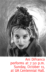 Show time is 2 p.m. in the TCC Music Hall, 260 S. Church Ave. Tickets range from $15 to $61, and are available by calling 293-4336. NEW WORLD OR BUST. Sure, anybody with more than a brain stem knows Columbus sailed the ocean blue in 1492. But more than a few Native Americans don't recall that date--and the European invasion it sparked--with any fondness. Nor do the folks of Derechos Humanos, a Southwestern human rights organization based in Tucson. Today, Derechos notes the wayward sailor with their second annual Counter-Columbus event, featuring readings by Native American poets, and discussions on human rights. Events begin at 7:30 p.m. in the Zenith Studio, 330 E. Seventh St. Admission is free, but donations are encouraged. Call 624-5564 for details.