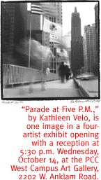 Horton transforms everyday objects into strangely juxtaposed shapes, creating sculptured pieces remarkable for their honesty and tongue-in-cheek twists. Hymer-Thompson combines the formal elements of light, shape and line to suspend time in her texturally rich, delicately colored Polaroid transfer images. The tension of wire is added to the strength of bronze in Poole's powerful mixed-media sculptures, while Velo's soft-focused pinhole photographs transform landscapes and antique buildings into the abstract. Exhibit continues through November 4, with an opening reception from 5:30 to 7:30 tonight, in the PCC Art Gallery, 2202 W. Anklam Road. For details, call 206-6942. NATIVE SOUNDS. Indigenous music with roots in Mexico, Chile and Peru emerges in full, combined force as Bwiya-Toli takes the stage for a free, lunchtime show. This five-person ensemble taps an equally broad range of Latin American instruments, from the guitarrón to the guitar, to weave their rich, lustrous sound.