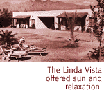 Many of these courts were family-run businesses. Most of them had a few tiny cabins, each less than 200 square feet. Parking, sometimes covered, was located between the units. Early court rooms in the late 1920s had been spartan, with travelers themselves often supplying the sheets and even curtains, or sometimes renting these little comforts for an extra 25 cents. But by the 1930s many courts were comfortable and--at a buck or two a night--affordable. Ah, modern life. SHAKING THE SLEEP from my eyes, I'm recalling the history of the No-Tel, built in 1942 as the Dobson Motel, named after the owners and operators, Elmer and Angeline Dobson. At the time, its neighbors on Oracle Road included La Siesta, the Major Motel, El Sol, the Don Auto Court, Ransom's, and the Welcome Tourist Court. Some of those courts still exist, including the former Oracle, still serving today's discerning traveling public under the name Tiki Motel. The Dobsons sold their little piece of the American dream in 1947. In 1951 it was renamed the DeAnza, and sold again in 1957, when it became the Tucson Holiday Motel. The Holiday was just one of many motels along the street in those days--the Oasis, Highland Tower Motel, Marilyn Motel and El Corral. Today, some are still there as motels, while others are serving as low-income housing or apartments. In 1961, Eldridge and Claire Rigg bought an interest in the Holiday Motel. Eldridge Rigg says Tucson was a much smaller place then, and that Oracle Road was still a major route through town. Much of the motel's clientele, he recalls, were traveling businessmen.