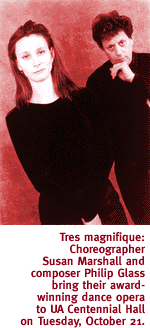 ![]() The Avant Garde Dance/Opera 'Les Enfants Terribles' Comes To Tucson -- With Composer Philip Glass Himself As A Performer By Margaret Regan ANNA KISSELGOFF, THE influential, hard-to-please dance critic for The New York Times, was not restrained when she reviewed Les Enfants Terribles after its American premiere in Brooklyn last year. "I have seen the future of dance opera, and it works," she pronounced.