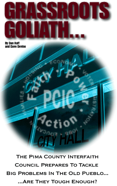 In response to criticisms of racism, PCIC officials are quick to point out the broad, multi-ethnic base of support their organization enjoys. PCIC co-chair Haag says, "I've never heard the organization make any kind of racial remark, or that kind of thing, other than how do we become more diverse, how do we be inclusive, as opposed to exclusive." And charges of threats and intimidation go both ways. PCIC co-chair Quiroz recalls that when she was signing up children for employment in front of San Agustine Cathedral as part of a PCIC project, she was called a "communist" by a Barrio Viejo resident. PCIC WAS CREATED in 1987 out of the now-defunct Office of Hispanic Affairs for the Roman Catholic Diocese of Tucson. Before that office died of inadequate funding, its supporters initiated the idea of building an organization of religious institutions to deal with issues of youth, crime and drugs, primarily in south central Tucson. "But that led to talks with clergy in other parts of the city," Pierson says. "Which, in turn, led to a national search for who knows how to build these kinds of organizations. And that, in turn, led to a conversation with Ernie Cortes, of the Industrial Areas Foundation (IAF)." Cortes founded Communities Organized for Public Service (COPS) in San Antonio in 1974. Credited by Henry Cisneros, U.S. Housing and Urban Development secretary, with changing the balance of power in that Texas community, COPS is an organization PCIC is trying to emulate. Cortes learned his trade under another legendary American activist, the late Saul Alinsky, who created the IAF in 1941. Pierson, who developed an interest in social activism while in divinity school, was associated with the IAF at the time, and was eventually chosen to organize PCIC in Tucson. This year the group is operating on a $214,000 budget. Salaries for Pierson, Associate Organizer Kimball and an office manager total about $100,000. The bulk of the organization's funding comes from membership dues ($69,000), foundation grants ($20,000) and contributions from business ($59,000). BUT THE REAL value in an organization like PCIC, says Pierson, is its ability to create activist citizens. "Far and away our biggest accomplishment so far," he says, "has been helping a lot of people learn how to engage more effectively in public life. Today there's a much, much deeper cadre of people from different parts of this town who now take public life very seriously, and who want to make changes in their own and in the community's interest." Councilman Leal agrees, noting, "When more people participate and are given the encouragement, training and information to participate in public life in an effective way, we all necessarily benefit."
