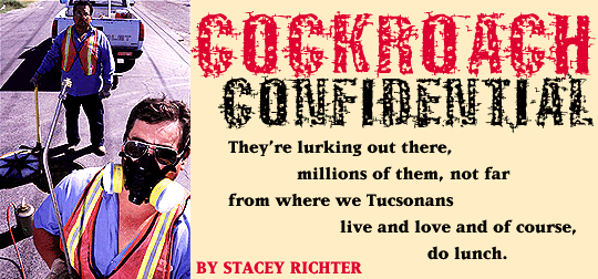 There's nothing more terrifying, as far as I'm concerned, than an encounter with a roach. A fat one frozen on the cutting board will start me hyperventilating. So I was relieved to learn that the 2,600 or so miles of sewer in Pima County are patrolled by the decidedly non-squeamish workers of Pima County Wastewater Vector Control, the government's official roach-exterminating militia. For the last two-and-a-half years, the brave workers of Pima County Wastewater have been spraying manholes and cleanouts yearly, on a rotating basis, during the warm months when roaches are most active. (Spraying began in 1988 with a different pesticide and a more haphazard approach.) "Vector," explains Laura Hagen Fairbanks, community relations specialist for Pima County Wastewater, "is just a fancy word for nasty little creatures."