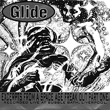 Glide's Excerpts From A Space Age Freak Out, Part One is a limited edition, orange vinyl seven-inch, complete with a beautiful gold-ink picture sleeve. Recorded "live" in Sergeant's native Liverpool at a club called The Bubblebath, the stage was "centered on a large dentist's chair, surrounded by gizmos, gadgets and goldfish, desks, discs and a DAT, all cloaked in netting and strafed by strobes."