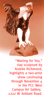 FEMININE VOICES. Pamela Uschuk and Charlotte Lowe lend their distinctive literary visions to this month's presentation by the WomanSpeak Reading Series. Uschuk's poetry has appeared in Poetry, Parnassus, American Voice, High Plains Literary Review and Nimrod. She's also garnered plenty of high-powered acclaim, including the 1996 Dorothy Daniels Writing Award from the National League of American PEN Women. Both Uschuk and Lowe have been longtime activists in the local writing community. Music will be provided by a cappella singer Joan DeMarcos. Free event runs from 4 to 6 p.m. in Aroma Café, 346 N. Fourth Ave. For information, call 206-9244.