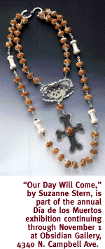 IN REMISSION. Just like those it commemorates, the holiday of Día de los Muertos will never fade. Every year, in fact, seemingly more celebrations, demonstrations and displays mark its passing. And now the Tucson/Pima Arts Council gets into the act with a new group exhibit titled--you guessed it--Día de los Muertos. Consisting of juried pieces by a variety of top local and Mexican artists, the show includes several media, ranging from sculpture and works on paper to mixed-media paintings and altars. Día de los Muertos is on display through November 28 at the T/PAC Community Gallery, 240 N. Stone Ave. Hours are 8:30 a.m. to 5 p.m. Monday through Friday. For details, call 624-0595.