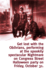 Pagan-minded bands range from the Forbidden Pigs and James Dead to Al Perry, The Phantom Limbs and The Oblivians (from Memphis). Those haunted Rage in the Cage wrestlers are also slated for an appearance, and prizes will be awarded for the best costumes, with categories including "Most Mutilated Man," "Most Wounded Woman," and of course, "Most Original." Proceeds from this urban poltergeist fest go towards the Rialto's ongoing renovation project. Advance tickets are $8, available at the Hotel Congress and Zia Record Exchange. Tickets are $10 at the door. No one under age 21 admitted. For details, call 622-8848. FIRE FRIGHT. Today the Northwest Fire District turns up the creep-meter at a trio of Haunted Safe Houses. With horrific help from the Marana Police Department, school drama departments and an eerie coven of volunteers, these hotbeds of terror are "sure to scare the bravest of visitors," says Northwest spokeswoman Katy Heiden. Separate, no-fright fun rooms will be available for younger kids. The free haunted houses are open from 6 to 10 p.m. at Station 30, 1520 W. Orange Grove Road; Station 34, 8165 N. Wade Road; and Station 36, 11901 W. Grier Road. Call 742-4749 for information. LOVE BITES. The Prince of Darkness sinks his teeth into All Hallow's Eve with a vengeance in Tucson Parks and Recreation Community Theatre's production of Bram Stoker's Dracula. Take a little trip to Transylvannia, via Randolph Park, as the Grey family engages the Count in immortal combat. Performances are 7:30 tonight through Saturday, and Thursday through Saturday, November 6 through 8, in the Randolph Recreation Center auditorium, 200 S. Alvernon Way. Admission is free. Call 791-4663 for details.