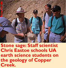 But before we do that, we need to learn the lay of the land. Chris Eastoe, UA geology department staff scientist, is along on the trip to help interpret the geology for students and hangers-on such as myself.