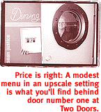 ![]() Meet The New Neighbors At Two Doors. By Rebecca Cook TWO DOORS, A new restaurant south of the University of Arizona on Sixth Street, attempts to add a touch of class to the college district. It offers elegant sit-down meals (complete with linen tablecloths) and food that can't be slapped between two buns or smeared across pizza dough.