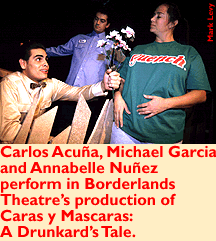 Borderlands Theater's production of Caras y Mascaras: A Drunkard's Tale continues with performances through November 11 at 8 p.m. at the Tucson Center for the Performing Arts, 408 S. Sixth Ave. Tickets are $10 general admission, with discounts for students and seniors. For reservations call 882-7406.