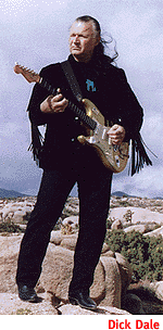 ![]() MR. ELIMINATOR: The Peppermint Man himself, Dick Dale, returns to the Club Congress on Friday, November 15, to play the heaviest gauge strings known to man, at speeds hitherto unbroken outside the bionic testing grounds. It's been a long time since the Del-Tones played the Rendezvous Ballroom: since, say, Frankie and Annette and the Beach Party movies and his first retirement in back in '65. Dick Dale's life since then has been a vague series of ups and downs, both in and out of the music industry. With the British invasion, Dale's nationwide popularity retracted to southern California, where the mythos of the King of the Surf Guitar has grown over the last 30 years, resulting in Dale's reemergence--albeit with a little help from pop culture. Given the official nod by Beavis and Butt-head, a 58-year-old Dale, with trusty gold Stratocaster in hand, is now enjoying the same once-famous, then obscure cult-hero-reborn to alternative popularity status as the Man in Black, Johnny Cash. As a former East Coast 13-year-old whose first introduction to Dick Dale and surf music (discounting the Beach Boys, of course) was the 1981 Agent Orange covers of "Miserlou" and "Pipeline," I can relate to the much-criticized younger generation searching out the real thing in this retro-crazed Age of Recycling. Dick Dale was as much of a surprise to me as David Bowie must have been to uninformed fans of Nirvana's cover of "The Man Who Sold the World." Calling Up Spirits, Dale's most recent release, is his third release since rejuvenating his career in 1992, and his first release since Tarantino used "Miserlou" for the Pulp Fiction soundtrack. Recorded live in a mere six days, Calling Up Spirits is Dale's debut on Beggars Banquet Records, the same label called home by (now-defunct) Bauhaus, Love and Rockets, Holy Barbarians, and Buffalo Tom. The record, touted as classic Dick Dale, boasts 13 tracks, four of which include vocals (something to look forward to in his live show) along with intermittent autobiographical stories told in the third person.