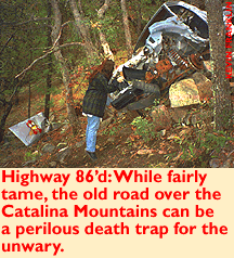 CONTROL ROAD DESCENDS from the north slopes of the Catalina Mountains into the range's northern foothills. Some say the epic journey is fraught with perils and tribulations. Others call it a joyride with nary a significant bump.