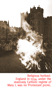 pressures from the Church early in her reign, reestablishing Anglicanism