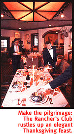 Charles Restaurant, 6400 E. El Dorado Circle, 296-7173. A lavish sit-down meal served from 11 a.m. to 9 p.m. will feature the usual turkey as well as the choice of either lamb chops, New York steak or fresh fish. Mince pie and an Italian rum cake will join pumpkin pie as dessert temptations. Seating between 2 and 3 p.m. is already booked, and other time slots are filling up fast. The cost is $18.50 per person. Ventana Canyon Loews Resort--The Ventana Room, 7000 N. Resort Drive, 299-2020. A special Thanksgiving Day menu will be served from 4 to 9 p.m., featuring by far the most innovative variations on a traditional theme. Your turkey comes sage-crusted and, if that doesn't appeal to you, try the turkey medallions or the grilled, spiced-apple-glazed wild boar chop, or the pan-seared sea bass with saffron pasta. You probably will not find pumpkin pie here, but the much sought-after creme brulé will make an appearance. Early seating is already taken, but openings remain after 7 p.m.s The price has not been set as of this writing, but will likely run $25 to $30 per person. Rancher's Club, 5151 E. Grant Road, 321-7621. A set Thanksgiving Day menu will be offered from 2:30 to 8 p.m. and will feature the ever-popular turkey in addition to prime rib, filet mignon and pacific salmon. Cost ranges from $20.95 to $28.50 a person with children's meals discounted by one-third. While we give thanks for all the blessings that have come our way in the past year (as well as for the restaurants, hotels and resorts that will stay open to accommodate our desire for a traditional meal without the fuss), perhaps it would also be fitting to keep in mind the other word root of the day, "giving."