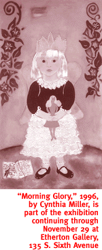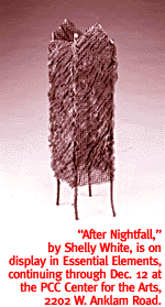 South Park: An Emerging Urban Community, 1940-1950 explores the heyday of an erstwhile neighborhood, while the hands-on Exploring 1870s Tucson, brings you face-to-face with grubstake desert pioneers and their less-than-lush lifestyles. The Buehman Studio Perspective offers photos of the early Old Pueblo, while Arizona-Sonora: Documents of a Shared History displays the tedious paperwork of those traversing the eternally porous border, and Through an Immigrant's Lens: Jose Rodriquez's View of His Adopted Land tells one transplant's story in stunning detail. Hours are 10 a.m. to 4 p.m. Monday through Saturday, and noon to 4 p.m. Sunday. Admission is free. The museum is at 949 E. Second St. Call 628-5775 for information. MIXED MESSAGE. Linda Caputo's mixed-media paintings evolve from eternal change, her ideas wrapped around drawing both balance and edges from the confusion, and at the same time crossing boundaries towards discovering just who and what we are. Sure, sounds like just another Monday morning for most of us. But Caputo takes that lumpen reality and moves it onto universal turf with her exhibit currently on display at the Dinnerware Contemporary Art Gallery. "To me, becoming more and more aware of the quiet, subtle and barely noticeable essence of ethereal and intuitive life is terribly exciting, and this is what I attend to in my painting," she says. "I am always looking for and working with perceptual adjustments." See her subsequently well-adjusted work through December 21 at Dinnerware, 135 E. Congress. Regular gallery hours are noon to 5 p.m. Tuesday through Saturday, and noon to 7 p.m. on Thursday. An opening reception for Caputo will be held from 7 to 9 p.m. Saturday, November 30. Call 792-4503 for information.
