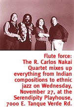 Kerri Strug will appear, pen in hand, from 7:30 to 8:30 p.m. at Border's Books and Music, 4235 N. Oracle Road. For details, call 292-1331. FLAUTED TALENTS. R. Carlos Nakai arguably put Native American music on the mainstream map. For nearly 14 years he's tapped his indigenous flute to trek across innovative traditional and experimental turf, most of which stubbornly defies classification. In a performance tonight, Nakai and his quartet will further that odyssey, mixing Indian compositions with Latin rhythms, ethnic jazz, salsa, classical and even blues rock, and meanwhile push his latest recording, Kokopelli's Cafe. He'll be joined by Tucsonans Will Clipman and J. David Muniz, and by Amo Chip, in an 8 p.m. performance at the Serendipity Playhouse, 7000 E. Tanque Verde Road. Advance tickets are $14, and available by calling 751-4445. City Week includes events selected by Calendar Editor Mari Wadsworth. Event information is accurate as of press time. The Weekly recommends calling event organizers to check for last-minute changes in location, time, price, etc.