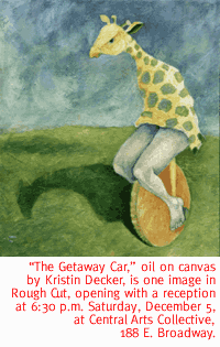 CUT ABOVE. Central Arts Collective continues along the cutting edge with Rough Cut, an exhibit of new works in painting, sculpture and mixed media by Kristin Decker, Keiko Imaoka and Catherine Sohn. Decker's paintings and mixed-media pieces explore issues of vulnerability and insecurity using toy animal motifs, stylistically rendered with underlying textures and bold colors. Imaoka's figurative clay sculptures are made using a variety of hand-building techniques, influenced by ancient Chinese philosophy, Jungian psychology, Buddhist teachings, and this region's geologic history. The dualities of existence comprise Sohn's subject matter. Her self-portraits in oils are reflections which transmit into a broader world scope; realistic pieces with thin layers of paint suggesting the search for truth and reality. Rough Cut runs through December 23 in the Central Arts Collective, 188 E. Broadway. Hours are noon to 4 p.m. Tuesday through Saturday, and during downtown Saturday Nights. Call 323-0979 for details. TERRITORIAL TRIMMINGS. The Arizona Historical Society really digs up the ghosts of Christmas past--in a dusty, charming way--with Christmas in Arizona Territory. This annual holiday exhibit features antique Christmas presents, trees decorated with antique ornaments, and historic toys that are a far cry from Nintendo, Beanie Babies and Power Rangers. The exhibit runs from 10 a.m. to 4 p.m. Wednesday through Saturday in the Sosa-Carillo-Frémont House, 151 S. Granada Ave. Call 622-0956 for details. FASTBALL. They're best known for their hit single "The Way," and the recently released "Fire Escape." Now fast-track Fastball (whose sweeping rock is a reigning fave in Texas clubs) makes its way to Tucson for one show on the UA campus. See this week's Music feature for details.