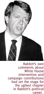 The FalloutPAUL ECKSTEIN WAS incredulous. "It's like being in some silly food fight. The Republicans have all these puff pastries, and the Democrats have their own stockpile of jelly doughnuts. All I've got in this mess are a few hard rolls," said Eckstein of the campaign fund-raising scandal ignited by his dispute with Babbitt. There is more than cynicism at work when Republicans take to their fainting couches at the thought that party donations might influence policy. Throwing Bruce Babbitt to a special prosecutor makes a mockery of campaign-finance reform, but according to anonymous sources in the Justice Department who spoke to the Washington Post, that may be Babbitt's fate. Now Eckstein sees that his few hard rolls were actually bullets, and he's without hope. You see, Eckstein has enormous respect for Babbitt's public career as attorney general, governor and member of the Clinton cabinet. Citing the emotional toll, Eckstein will no longer discuss his confrontation with Babbitt. His remarks are no longer needed in any case; the die is cast. Both Ickes, who is already gone from his coveted position in the White House, and Babbitt are victims of the political game both men played with relish. Babbitt's apologists forget too quickly that he always kept his eye on the smarmy realities of an unseemly craft while in Arizona. His word was not his bond, friends who were liabilities were jettisoned, and political expediency was no stranger to his administrations. When an old colleague engineered a victory at the polls, the campaign manager proceeded to a raucous election-night party where he had too much to drink, left and approached an undercover vice officer. Babbitt ended the man's career with a finger snap.