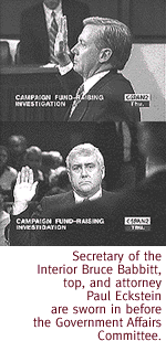 ![]() LIKE MANY ARIZONANS, I want to believe both Secretary of the Interior Bruce Babbitt and his former colleague Paul Eckstein. Each man has an almost folkloric reputation for integrity. Yet the U.S. Senate hearings that have spawned a Department of Justice probe into Babbitt's 1995 denial of an Indian casino permit in the Midwest--spurred in significant measure by Eckstein's testimony suggesting that Interior's rejection of the casino amounts to an illegal, political quid pro quo--have left us to wonder: Which of our native sons is telling the truth?