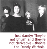 ![]() Portland's Pop-Psyche Players Take Off Their Clothes. By Brendan Doherty THE COVER OF the Dandy Warhols' new record, Dandy Warhols Come Down, says it all--the band sits on once-elegant furniture in a house filled with dilapidated Tiffany lamps, and ornate and sad couches that've accommodated a few too many asses. Sipping wine from long-stemmed glasses, they look out of place in their vintage Rolling Stones T-shirts, blonde-over-black roots and the requisite hipster gear that's decidedly un-Victorian. They look like visitor-kids getting drunk in the attic while their folks are away at work; or worse, relaxing burglars.