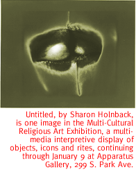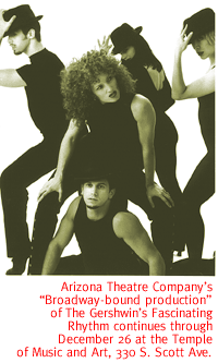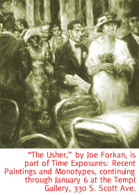 Appropriately, his work draws its tone from photographs. Haunting, distilled images allow us to stare into the faces of the long-dead, dwelling on lost moments and rooting through the relics of vicarious recall. Conversely, they often influence and distort our recollections to agree with them. Or, according Forkan, "The images dictate, the memory changes, and the truth adapts." These shifting, poignant images are on display in Joe Forkan: Paintings and Prints, continuing through January 6 in the upstairs gallery in the Temple of Music and Art, 330 S. Scott Ave. An artist's reception gathers tonight from 6 to 7:30 p.m. Regular gallery hours are 10 a.m. to 6 p.m. Monday through Friday, and prior to ATC performances. Call 624-7370 for details. SEASONAL KEYS. Tucson erupts with seasonal tones when Desert Voices performs Traditions. Against a staged backdrop of Fourth Avenue, the chorus gathers for a holiday party and shares traditions from cultures around the world. Highlights include "Miracle," a tale of the White Buffalo Calf Woman, with returning special guest Mary Redhouse; and "Betelehemu," the vibrantly rhythmic Christmas song from Nigeria. The chorus will also present the world premiere of "Appalachian Carols," by American composer Gwyneth Walker. Show time is 8 tonight and tomorrow in the PCC Proscenium Theatre, 2202 W. Anklam Road. Advance tickets are $10 and $12, available at Antigone Books, Tucson Trunk, Unique on Central, and the Desert Voices office. Tickets are $12 and $15 at the door. Call 791-9662 for information.