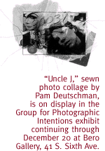 Doublewide Showroom begins at 7:30 p.m. at The Screening Room, 127 E. Congress St. Admission is $2. For information, call 206-9244. PRETTY PICTURES. You still have time to catch the eye-soothing moments distilled by photographer Cindi Glassman in Ubiquitous Beauty, now on display at The DeGrazia gallery. "In all of my photography, I concentrate on finding beauty," Glassman says. "I capture images I feel are aesthetically delightful. My images range from desert landscapes to portraits to almost complete abstractions." Ubiquitous Beauty continues through Friday, December 12, at The DeGrazia Gallery, 6300 N. Swan Road. Hours are 10 a.m. to 4 p.m. daily. For details, call 299-9191.