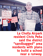 ![]() Vicki Cox-Golder And Bill Arnold's Last Land Deal In The Amphi School District Crashes And Burns. By Jim Nintzel THE LAND-DEALIN' political tag team of Vicki Cox-Golder and Bill Arnold has certainly fallen on hard times. First they get stomped by Democrat Sharon Bronson in the race for Pima County Supervisor Ed Moore's District 3 seat in the November election. Then, this week, at Vicki's last meeting as president of the Amphi School Board, they get shot down by an angry squadron of soccer moms and bush pilots. Cox-Golder's fellow board members voted on Tuesday, December 10, to cancel the purchase of 39 acres next to La Cholla Airpark for a junior high school. Acting under his exclusive retainer agreement with Amphi, Arnold brokered the deal for the land, which is--surprise!--partially owned by Charles Townsdin, a real estate lawyer who has worked for Cox-Golder off and on for the last 20 years. Townsdin was the single largest contributor to Cox-Golder's campaign for the Pima County Board of Supervisors. Although the district had entered into escrow on the property last July, they kept the public in the dark about the deal until the details leaked out less than two weeks ago. The word spread fast. In the space of a week, the purchase was condemned by the Pima County Board of Supervisors, the Oro Valley Planning and Zoning Department and an FAA safety official. Once the story broke in The Weekly and on the television stations, angry parents aligned themselves with airpark residents and Amphi Board members began to ...feel the heat. Cox-Golder was the first one overboard, announcing she had a conflict of interest and couldn't vote on the buy--a decision she made after being confronted by formerly friendly news crews about the links between her campaign contributions and the property owners. After announcing she'd sit the vote out, Cox-Golder told Tucson Citizen reporter Larry Copenhaver that she would have voted against the deal--a statement Copenhaver reported with a straight face. "I would never do anything that would jeopardize the safety of children," she told Copenhaver. Only one question, Vicki: If you were voting against purchasing property from your business associate, why would you have a conflict of interest? The next board member to bail was Richard Scott, who was too ill to attend Tuesday's meeting. Perhaps he was suffering from a bout of airsickness brought on by the turbulence. With whispers of recall in the air, the remaining board members slipped behind closed doors on Tuesday afternoon to discuss the land purchase in executive session. When they emerged to face a hostile crowd of parents and pilots, they had already scripted a motion to cancel the sale. After hearing from about a dozen pissed-off citizens, they passed the motion 3-0. BACK WHEN SHE was wafflin' down the campaign trail, we found Cox-Golder to be extraordinarily disingenuous. But after watching her tell the Citizen she was suddenly opposed to a land deal her right-hand man had been brokering for the last six months, we'd have to say she's an out-and-out liar. Let's take a closer look at the deal: Charles Townsdin was a staunch supporter of Cox-Golder. He and his wife Sandra contributed a total of $750 to her failed bid for county office. Nobody is saying a mere $750 bought Cox-Golder's support on the $665,000 land deal--that would be a ludicrous claim. We simply point it out to demonstrate Cox-Golder and Townsdin are close--as Cox-Golder herself admitted to KVOA-TV reporter Tony Paniagua: "I've known Chuck Townsdin for well over 20 years," Vicki told Paniagua. "He's been my personal counsel for a bunch of that time. I did not even know he was the seller of the this property 'til last week." Such a small world. But then, Cox-Golder also told Paniagua, "Typically, the board does not know, number one, who the sellers are of a piece of property, even when we close it."
