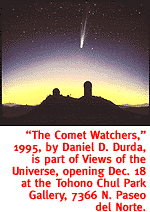 Her La Gran Guadalajara series in particular captures south of the border idioms, reveling in that sprawling city's complex culture. The longtime Tucson artist's work will be accompanied with pieces by Jeff Schwartz through December 22, with a reception today from 2 to 5 p.m. at M. Revak and Co., 1440 N. Stone Ave. Regular gallery hours are 10 a.m. to 4 p.m. Tuesday through Friday. Call 624-3445 for details. SWADDLING TRADITION. 'Tis the season for mangers, and in that spirit St. Elizabeth of Hungary Clinic sponsors its annual Nacimiento Tour. No matter the language, nativity scenes are universal, and this self-guided journey highlights the best in homes throughout town, anchored by a live tableau at Centro Cultural de las Americas, 40 W. Broadway, accompanied by the Merilac Auxiliary's holiday gift boutique. "There will be nine sites, and displays range from historical to modern, from miniature to life-sized," says clinic spokeswoman Mary Jimenez. "We've been doing this for eight years, and now we have lots of people calling us about it." All proceeds benefit the clinic. Event runs from noon to 6 p.m. Tickets and maps are $6 for adults, free for kids age 12 and under, available at the St. Elizabeth of Hungary Clinic, El Charro Restaurant Gift Shop, El Charro Restaurant East, Leilani's Sheer Creations Beauty Shop, Our Mother of Sorrows Parish and St. Ambrose Church. For information, call 628-7871. BORDERLINE OPULENCE. Glimpse the glamorous side of Nogales as the Transcultural Border Alliance of Women hosts the annual Christmas Mansion Tour in Sonora. "These visits take you right into folk's contemporary homes," says alliance spokeswoman Anita Phillips, "and are meant to reverse the discrimination towards the wealthy in Mexico, the attitude that they all attained what they have through the drug trade." The tour begins with breakfast at the Cow Palace in Amado, and proceeds by bus across the border. Mexican families will open their doors to visitors, with refreshments at each stop, culminating in music and a raffle at the last mansion. Proceeds benefit the alliance's various charity and scholarship programs. "It's basically a full-day party," Phillips says. The event runs from 8 a.m. to 4 p.m. Participants meet at the Cow Palace, located approximately 45 minutes south of Tucson on I-10, exit 48. Tickets are $60, payable by check only, and available at AAA offices on Oracle Road in Tucson and Green Valley. For information, call 1-520-342-0123.